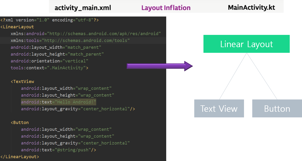 View Binding 은 findViewById를 사용하지 않고 object에 xml view 컴포넌트의 ID를 찾아서 inflate 해줍니다. ( ViewBinding은 XML layout을 위해서 binding 할 object를 생성합니다. )