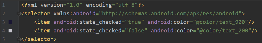 위의 그림에서 알 수 있듯이 각 탭의 색상은 선택되었을 때는 On Primary 색상의 100% 투명도를 가지고, 선택되지 않았을 때는 76%의 투명도를 가집니다. 이와 다르게 탭이 선택되었을 때와 선택되지 않았을 때 색상을 다르게 하고 싶다면 color resource 파일을 이용하면 됩니다.