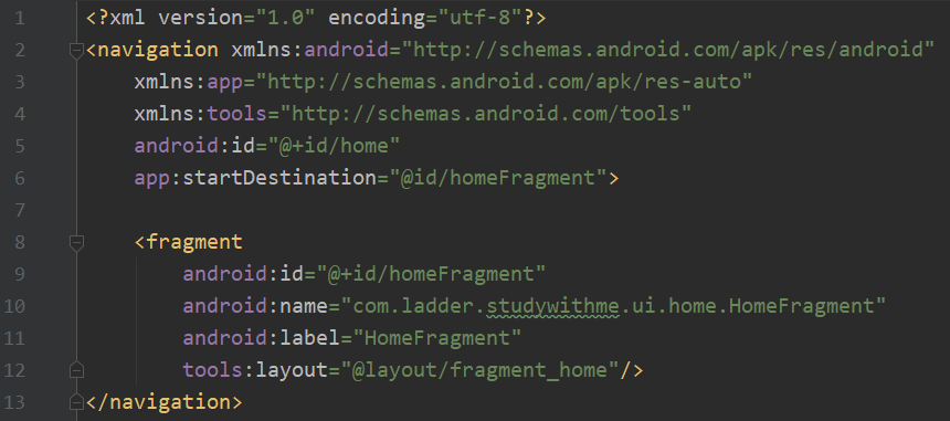 이때, 각 탭에 대한 navigation res 파일의 android:id과 menu res 파일의 각 item의 android:id가 동일한 이름으로 선언되어 있어야 합니다. 이를 동일하게 설정하지 않을 경우, java.lang.NullPointerException: null cannot be cast to non-null type androidx.navigation.fragment.NavHostFragment과 같은 에러를 만날 수 있습니다. ( 참고 - stackoverflow )