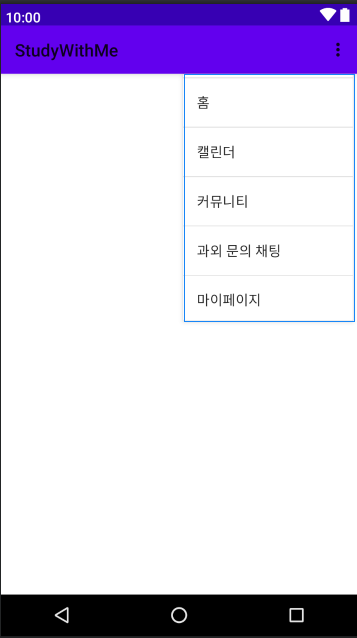 Menu resource 파일은 BottomNavigationView에 보일 탭들을 선언해놓는 파일입니다. 이때, 탭의 개수는 3개 이상 5개 이하여야 합니다.