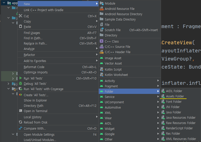 Activity나 Fragment에서 Gson 라이브러리를 import하고 getJsonDataFromAsset 메소드 호출하기